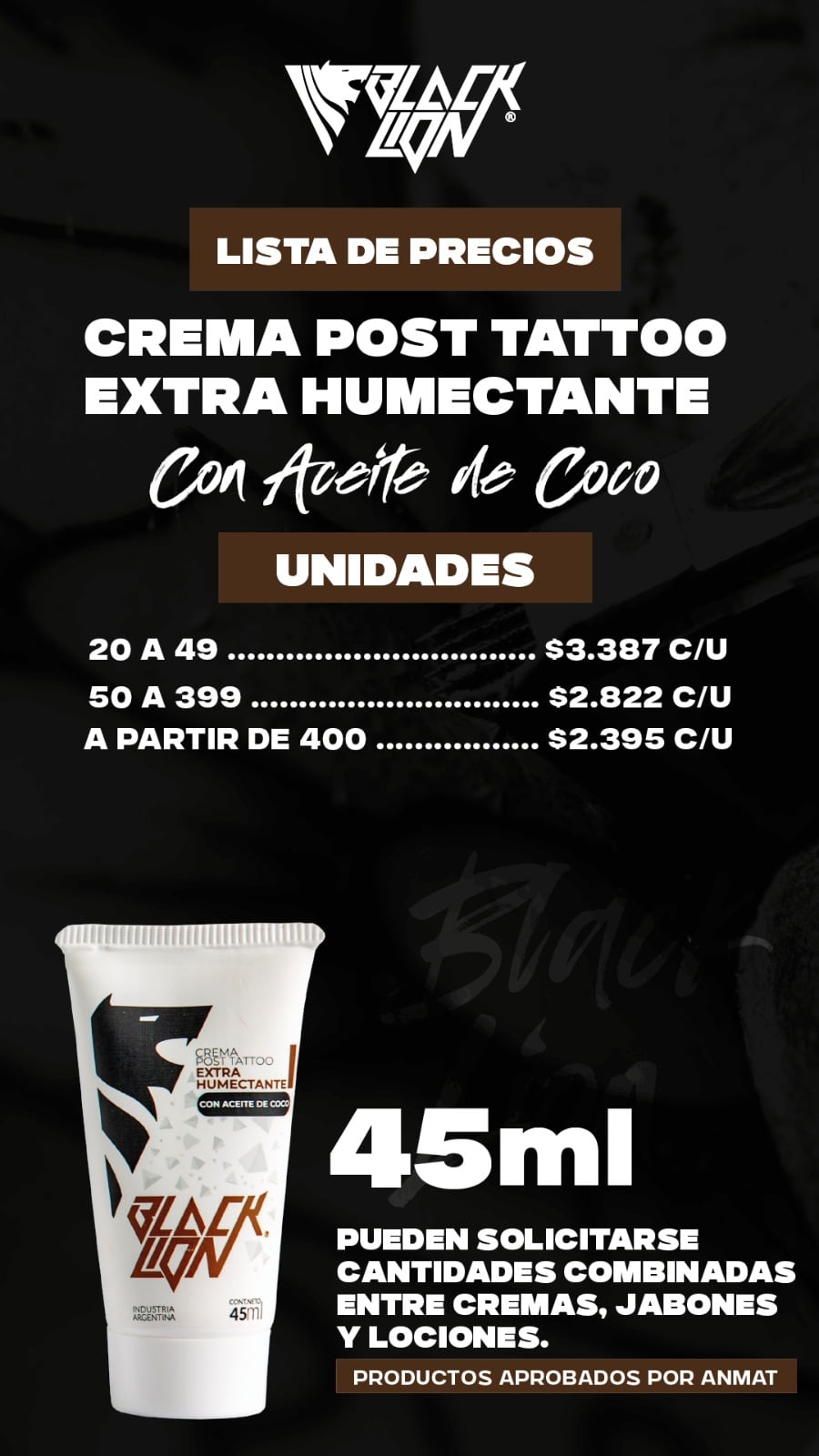 Crema Post Tattoo Extra Humectante c/ Aceite de Coco